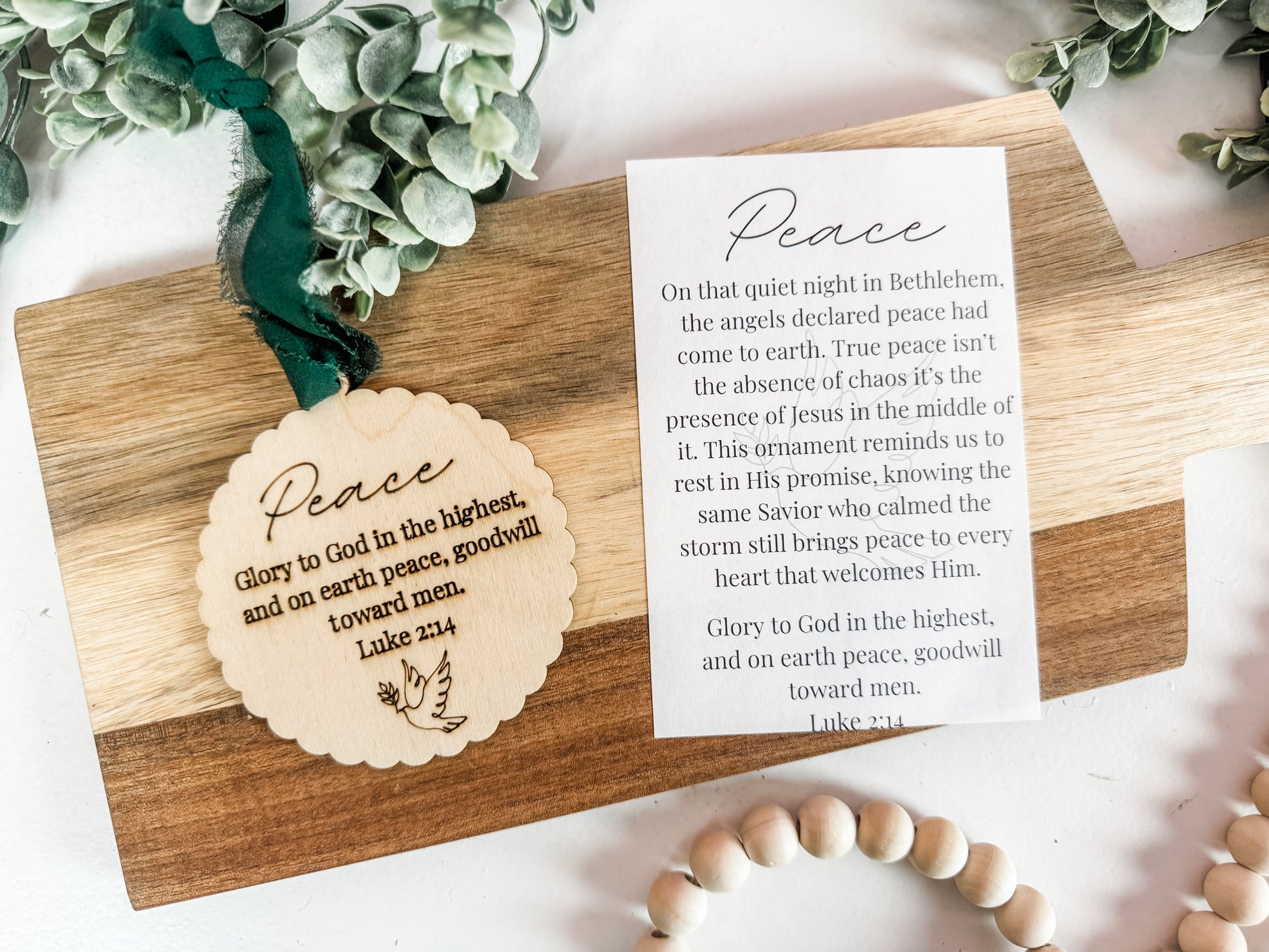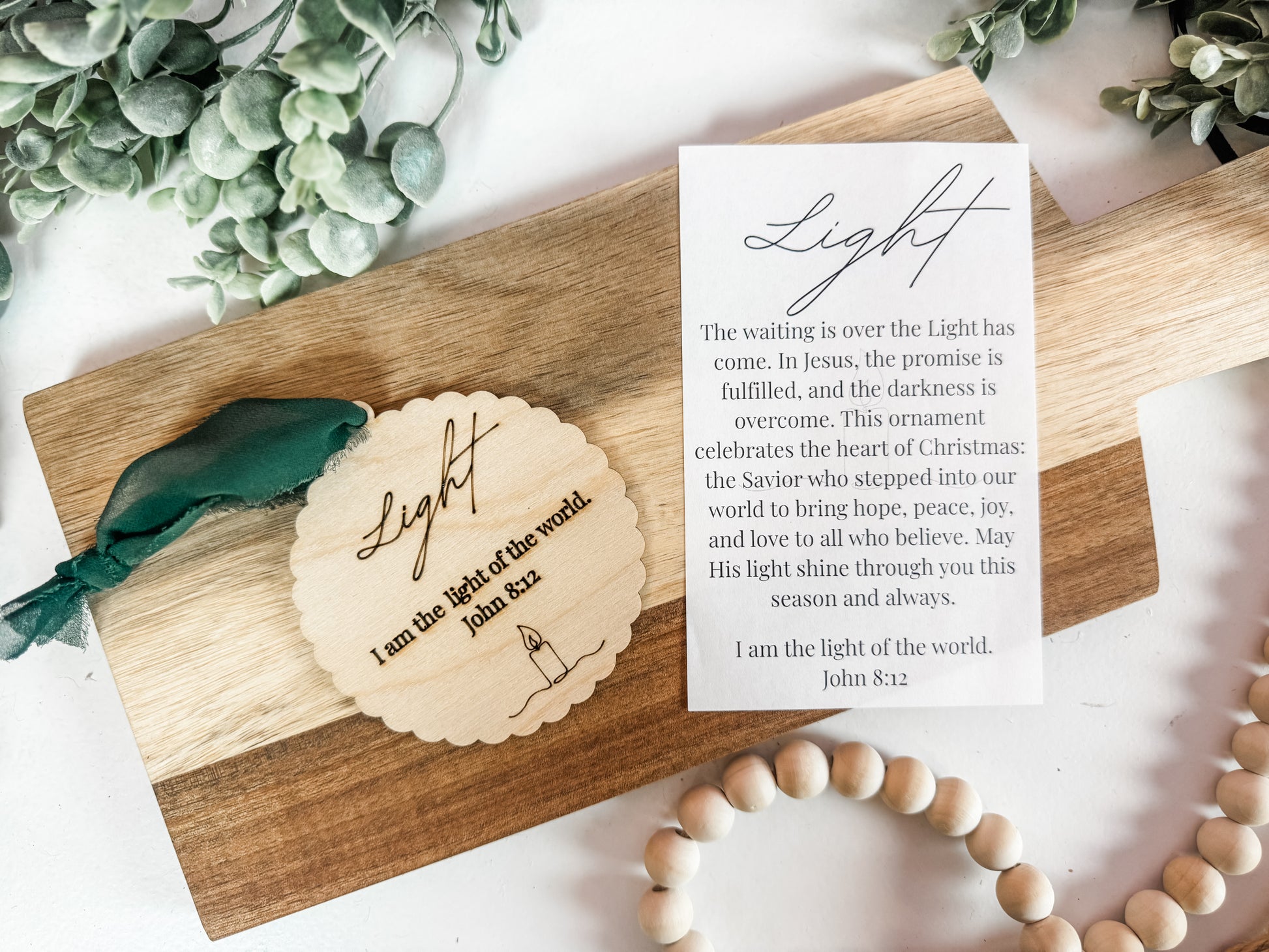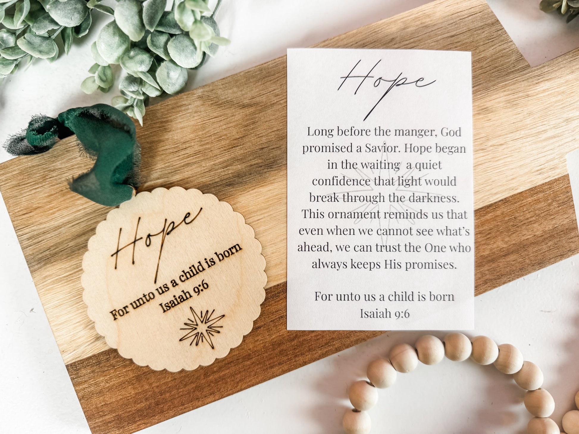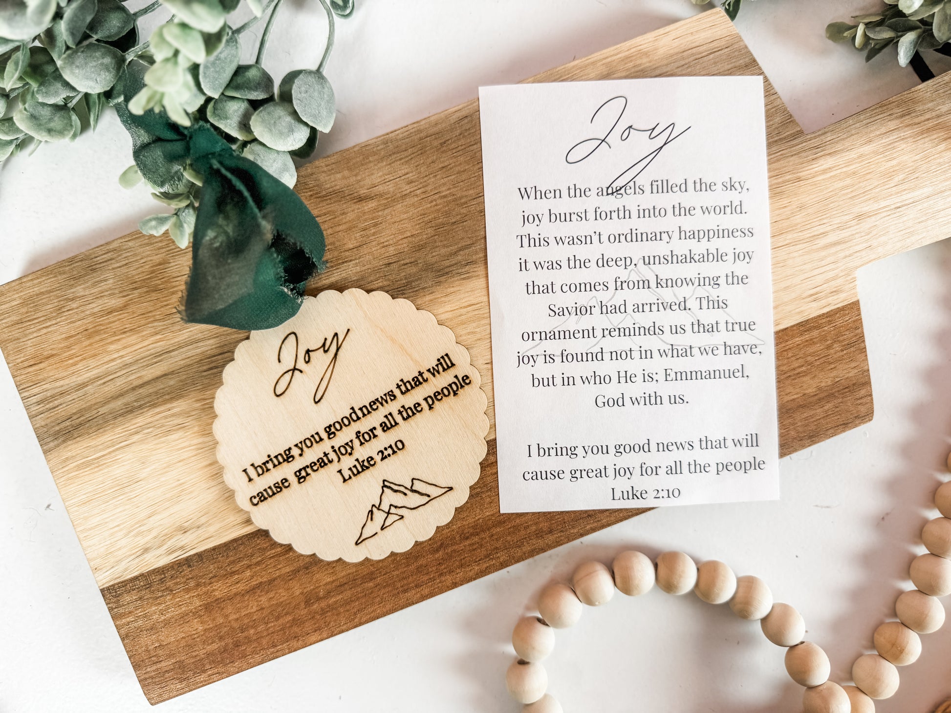 Each wooden ornament is engraved with a Scripture verse and paired with a coordinating story card that shares the message behind the word. Perfect for reading together during Advent, gifting to loved ones, or displaying on your Christmas tree all season long.