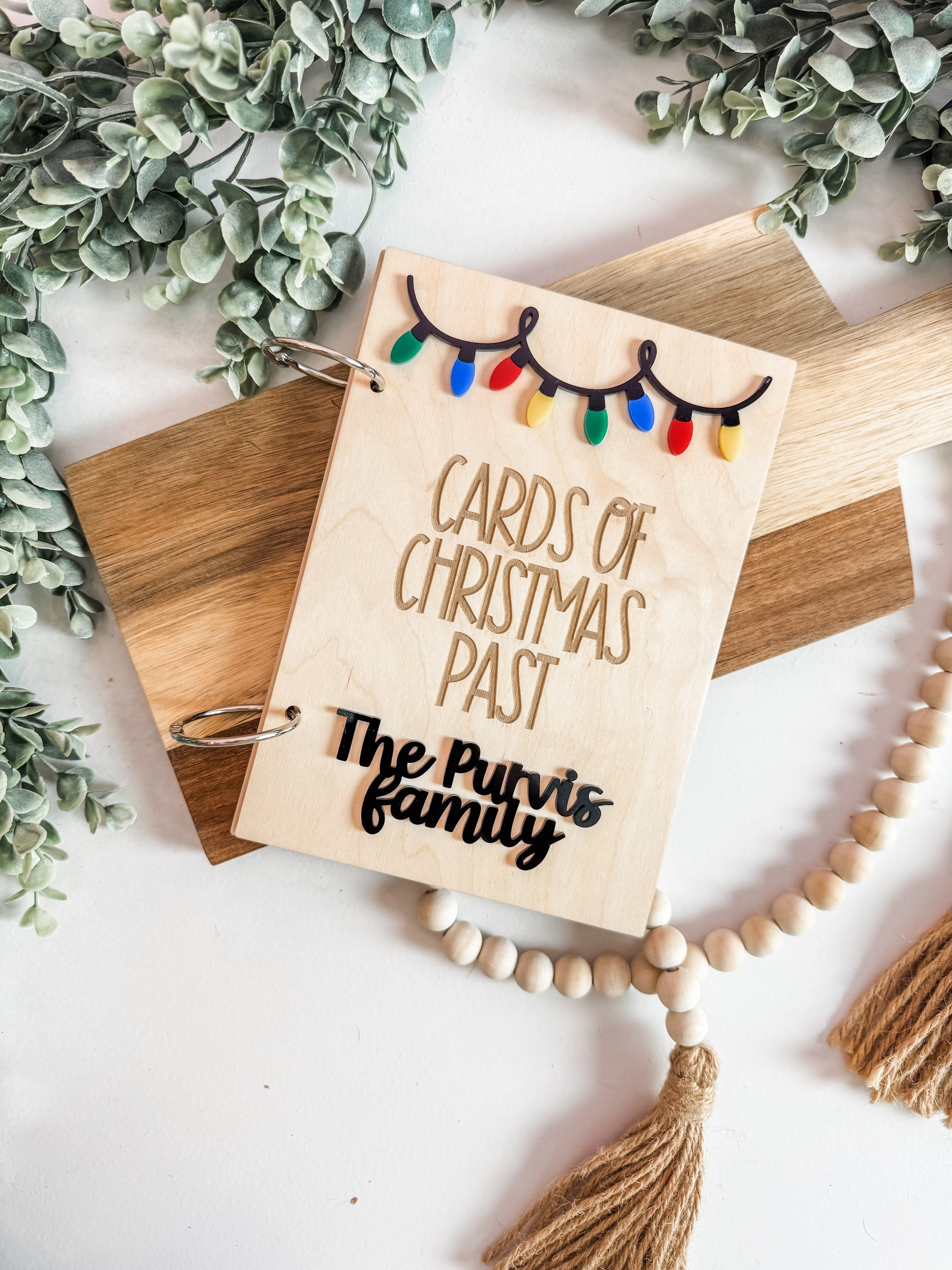 Keep your holiday memories alive year after year with our handcrafted Cards of Christmas Past binder. Made from premium Baltic birch wood, each binder is laser cut and engraved with your family name, creating a lasting keepsake to hold all the Christmas cards you’ve received.