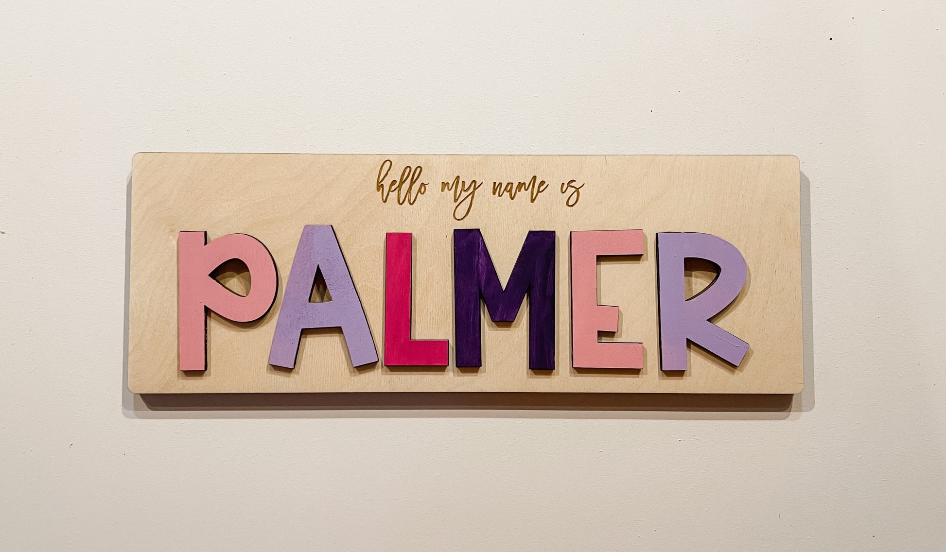 Add a fun and colorful touch to your child's room with this Personalized Pink & Purple Name Puzzle! Perfect for nursery decor or as an educational tool, this wooden puzzle is custom-made with your child's name, featuring playful shades of pink and purple for a vibrant, eye-catching design.